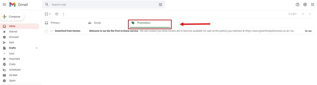 5. If our email is not in your inbox, it may be that you have a ‘Promotions’ folder set up. Click on the ‘promotions’ tab at the top and you will see our email there.